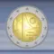 de 2 EURO munt is verpakt in een zelfklevende munthouder.