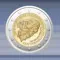 de 2 EURO munt is verpakt in een zelfklevende munthouder.