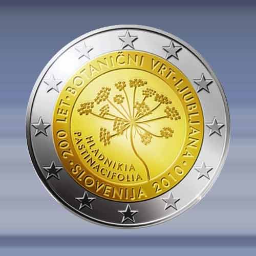 Botanische tuin. de 2 EURO munt is verpakt in een zelfklevende munthouder.