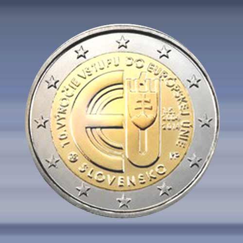 de 2 EURO munt is verpakt in een zelfklevende munthouder.