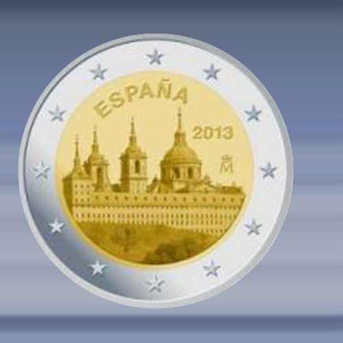 El Escorial de 2 EURO munt is verpakt in een zelfklevende munthouder.