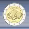 de 2 EURO munt is verpakt in een zelfklevende munthouder.
