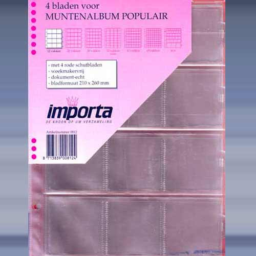 4 bladen voor muntenalbum populair 12 vaks met 4 rode of zwarte schutbladen.