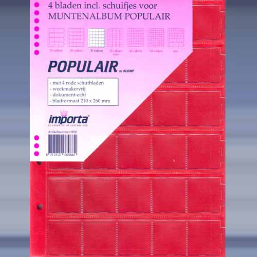 4 bladen voor muntenalbum populair 30 vaks met 4 rode of zwarte schutbladen.