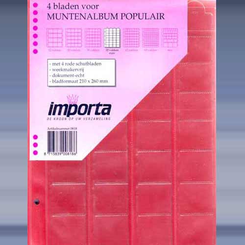 4 bladen voor muntenalbum populair 32 vaks met 4 rode of zwarte schutbladen.
