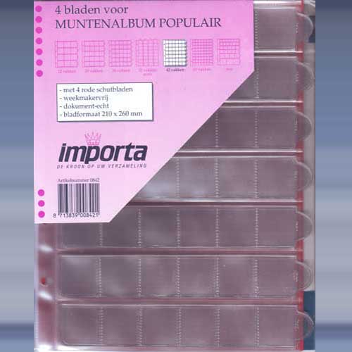 4 bladen voor muntenalbum populair 42 vaks met 4 rode of zwarte schutbladen.