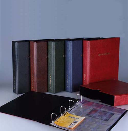 Gewatteerde kunststof 4-rings band met 5 transparante bladen voor 20 munten in munthouders per blad.