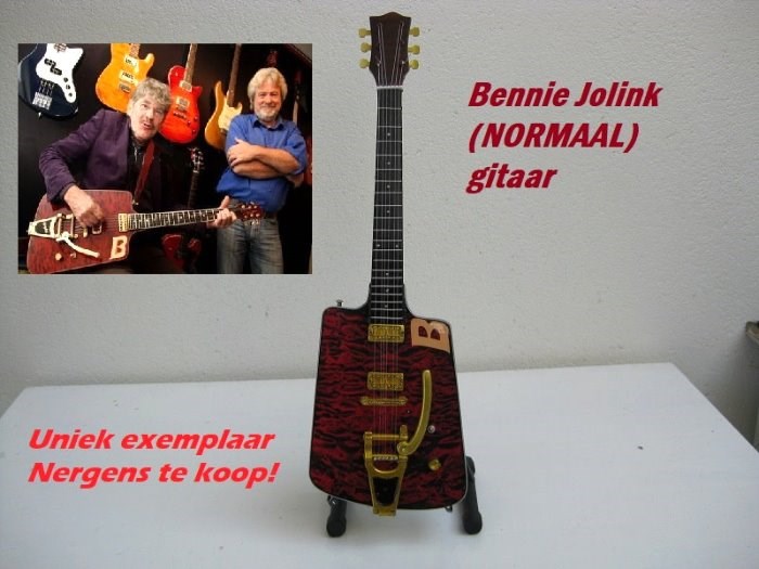 Handgemaakte miniatuur gitaar (hout) met echte snaren van Bennie Jolink - NORMAAL -