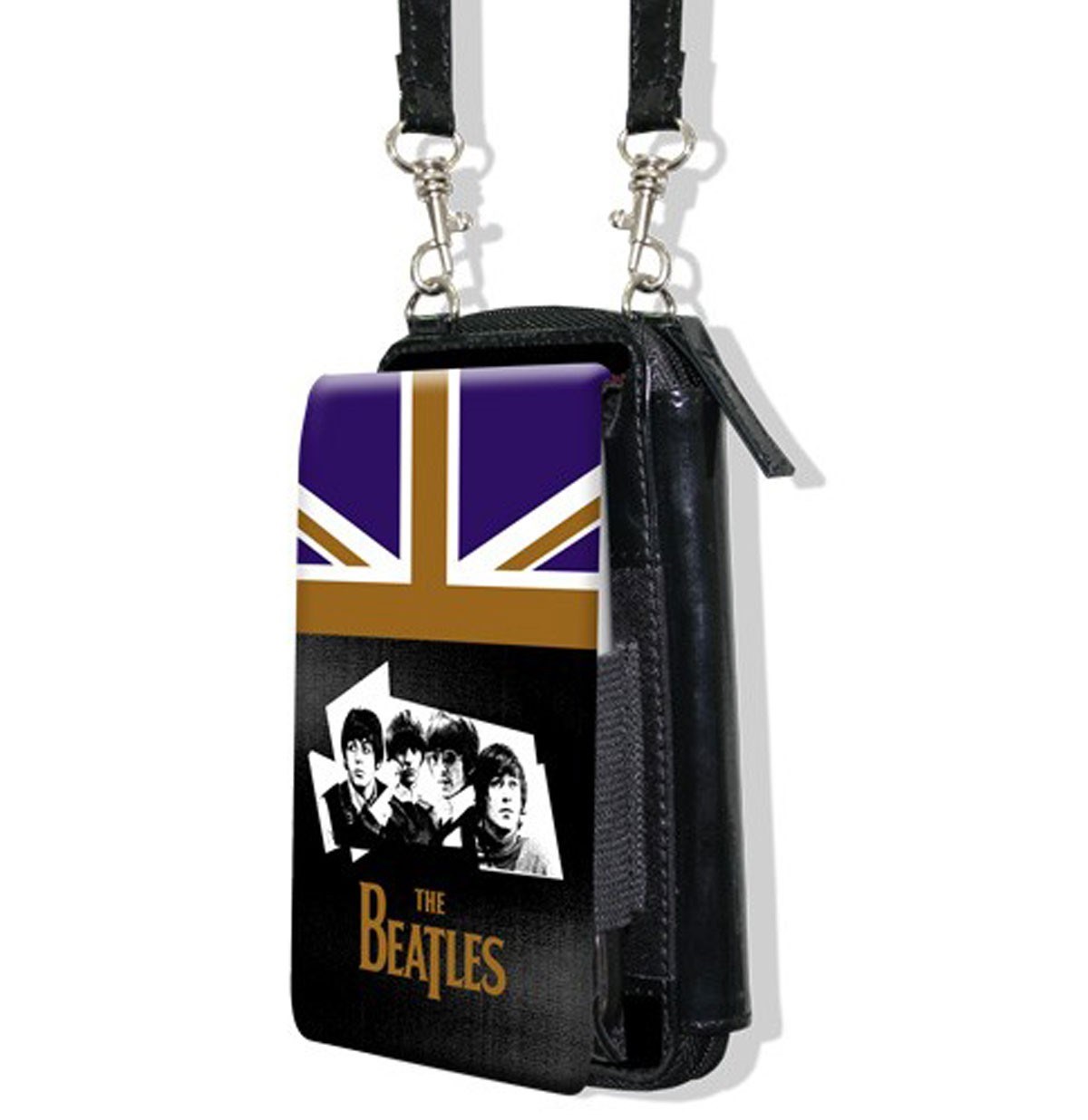 Portemonnee van the Beatles met de engelse vlag. Aan de voorkant zit een flap waarachter een telefoon (t/m iphone4) gestoken kan worden, aan de achterkant zit een portemonnee met rits, vak voor briefgeld, 3 vakjes voor pasjes en een kleingeld vakje met rits. Aan de zijkant zit roze panterprint. Wordt geleverd met lange smalle band.