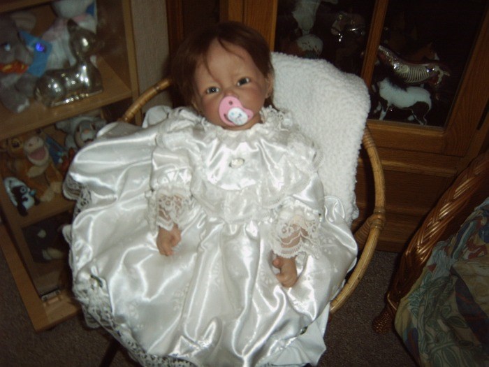 Lenie is gekleed in een prachtige doopjurk!Zij heeft prachtige groene ogen en schattige oorbellen in .Geen ruiling !INCLUSIEF VERZENDING IN NEDERLAND !