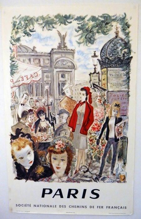 Originele reclame-affiche (offset) voor de stad Parijs uit 1962 door André Dignimont (1891-1965), getekend in de plaat onderaan midden / rechts 'dignimont'. Zeer mooie kwaliteit.
