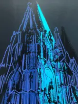 Replica van het werk "Cologne Cathedral (Blue)" zeefdruk gemaakt door Warhol in 1985.