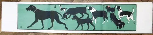 Lithografische poster, groep honden.