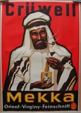 Reclame-affiche voor rooktabak van Mekka Crüwell / Orient - Virginia - feinschnitt / Gebr. Crüwell spezialfabrik für rauchtabak Bielefeld.