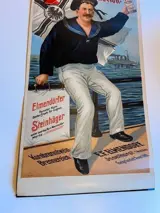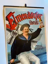 Poster Wereldoorlog I Propaganda Zeeman S.M.S. Moltke reclame distilleerderij Elmendorf. Circa 1915. Metalen rails boven en onder voor stabilisatie. Leeftijd gerelateerde conditie, zie foto's.