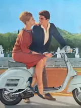 Mooie poster van de Piaggio Vespa GS, met een afbeelding van Tod Windsor op het foro italico (Rome)