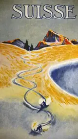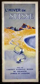 Brochure ( 23 x 11 cm, 40 blz.) uitgegeven door het Nationaal Toerisme Bureau van Zwitserlandmet prachtige cover van afdalende skiërs en een compleet overzicht van de wintersport-stations, verlucht met foto's in sepiatint.