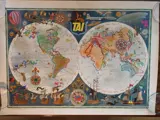 Beroemde planisfeer voor de TAI (International Air Transport) geproduceerd door de affichekunstenaar en officiële schilder van de marine Luc-Marie BAYLE, auteur van talrijke affiches voor Air France. Het gepresenteerde exemplaar is waarschijnlijk gemaakt aan het einde van de jaren vijftig, maar in ieder geval vóór 1963, de datum van de fusie van de TAI en de UAT tot de Union des Transports Aériens (UTA). Het is in goede staat en heeft geen vlekken, scheuren of gaatjes. Enkele vouwen aan de randen (zie foto's) maar een planisfeer die altijd opgerold is gebleven.