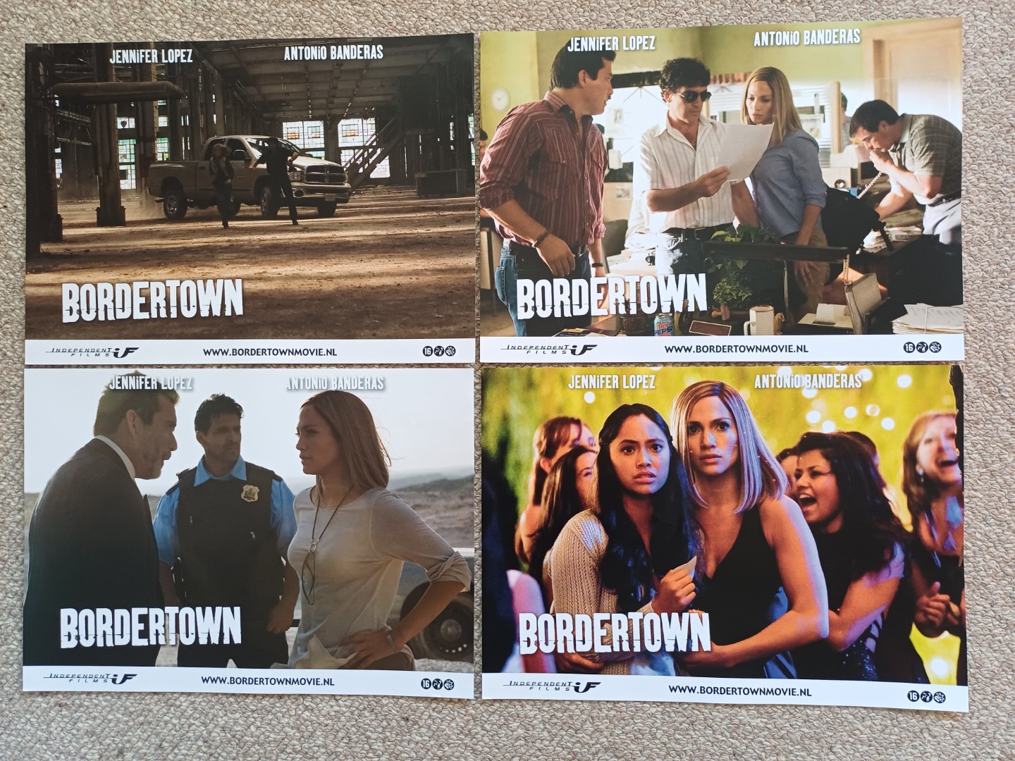 ORIGINELE komplete Nederlandse filmfotoset( bioscoop vitrine foto 's ) van 4 st. in het formaat van 35 x 25 cm. en in ongebruikte staat.