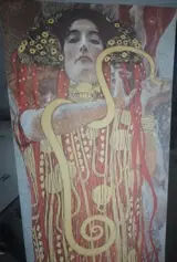 Hygieia Goddess of Medicine door Gustav Klimt - Universiteit van Wenen (Geneeskunde) plafondschilderingen, detail met Hygieia, dochter van de god van de geneeskunde (Grieks) Deze olie op canvas uit 1907 maakte deel uit van een serie in opdracht Oorspronkelijk voor de Universiteit van Wenen in 1894 .