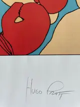 De poster (op glanzend papier) is een zeldzame genummerde eerste druk, P.A., die de toegevoegde waarde geniet van de volledige potloodhandtekening van Hugo Pratt, meester van de Italiaanse strip.