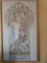 De poster is geplakt met zuurvrije lijm op karton en ingeframed in eikenhouten lijst met plexiglazen plaat ervoor.