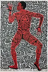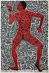 Affiche voor de tentoonstelling van kunstenaar Keith Haring in de Tony Shafrazi Gallery, New York. Gesigneerd in de plaat. Staat een.