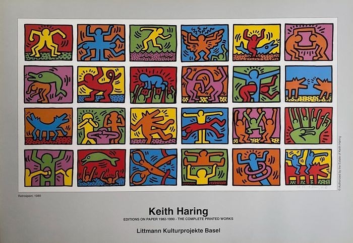 Originele offset litho print op dik mat papier met afbeeldingen van Kieth Haring papieren edities van 1982 tot 1990.