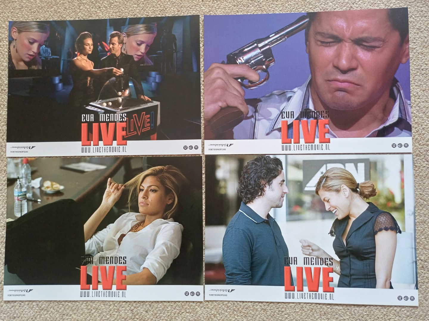 ORIGINELE komplete Nederlandse filmfotoset( bioscoop vitrine foto 's ) van 4 st. in ongebruikte staat en het formaat van 35 x 25 cm.
