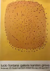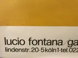 Mooie en zeldzame poster van Lucio Fontana gemaakt voor zijn tentoonstelling in maart 1977 in de Karsten Greve Gallery.