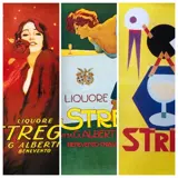 Nee. 3 affiches uit de jaren 90, reproductie van de reclameaffiches uit de jaren 30/40 voor Alberti, producent van Strega-likeur, ontworpen door Depero en Duduvich. Kwaliteitsafdruk op zwaar karton.