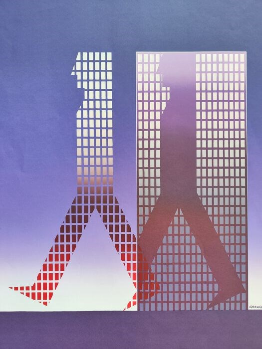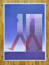 De Franse grafisch ontwerper Michael Granger ontwierp deze poster voor een beurs in 1978 in Parijs, gesponsord door een vereniging die kantoorautomatisering promoot (SICOB).