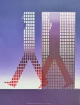 Het opvallende ontwerp van deze poster laat een man zien die wegloopt van een wolkenkrabber, waarbij de afdruk van het raster van het gebouw de vorm bepaalt.