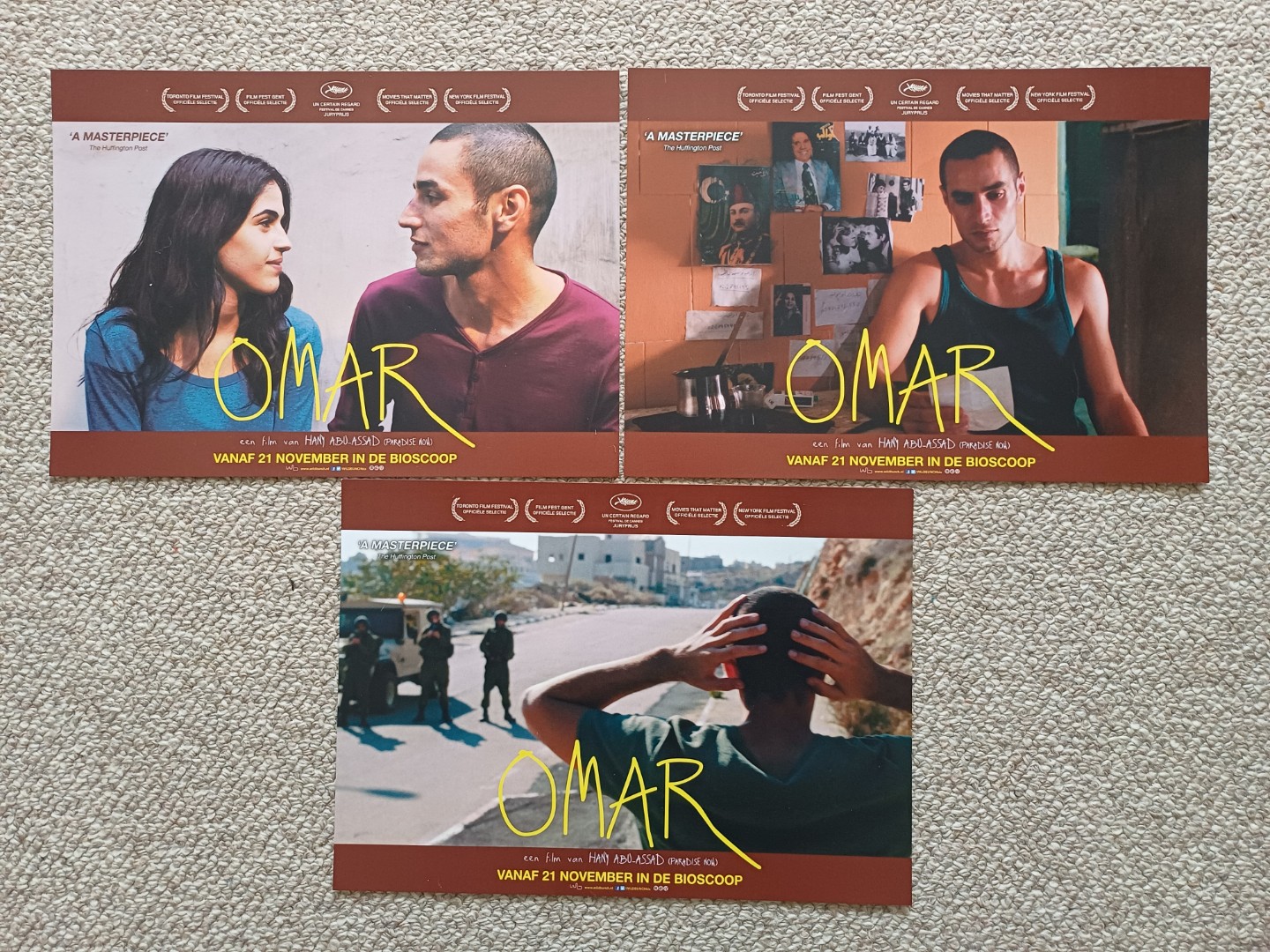 ORIGINELE komplete Nederlandse filmfotoset( bioscoop vitrine foto's ) van 3 st. in het formaat van 31 x 22 cm. en in ongebruikte staat.