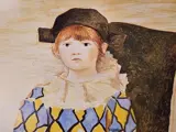 De kleine jongen is gekleed in een kostuum dat wordt geïdentificeerd als dat van Harlequin, met de gekleurde diamanten van de jumpsuit, de aardbei rond de nek en de steekmuts op het hoofd. Dit kostuum, Picasso heeft het, in zijn atelier. Het werd hem nagelaten of gegeven door zijn vriend Jean Cocteau, die hem op een dag in het jaar 1916 vermomd als harlekijn bezocht. De schilder gebruikte het jaren later om enkele van zijn modellen te kleden, waaronder zijn zoon hier, maar ook vrienden, zoals de schilder Jacint Salvadò in 1923.
