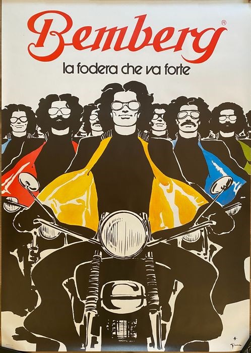Mooie originele poster van Rene Gruau gedrukt door monolith -20127 voor Bemberg the lining that goes strong.
