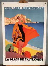 Herdruk van de poster LA PLAGE DE CALVI CORSE geproduceerd door Roger Broders in 1930. Poster gedrukt in 2018 op Hahnemühle-papier van 100% katoen in 100 exemplaren door Eric Linard Imprimeur in opdracht van Langlaude-edities. Onze poster is nummer 12/100.