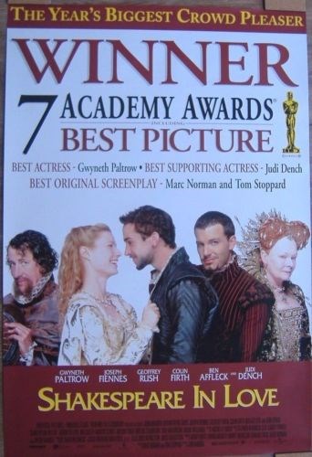 Regie : John Madden en met Geoffrey Rush, Tom Wilkinson, Steve O’Donell, Tim McMullen, Joseph Fiennes, Steven Beard, Anthony Sher, Patrick Barlow, Martin Clunes, Sandra Reinton, Simon Callow, Judi Dench, Nicholas Boulton, Gwyneth Paltrow, Colin Firth, Barnaby Kay, Jim Carter, Paul Bigley, Joe Roberts, Mark Williams.