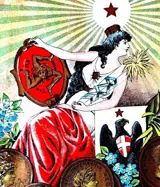 Andere figuratieve elementen, geplaatst aan de zijkanten van de afbeelding, maken het label bijzonder aangenaam en elegant.