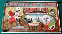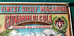 Bovendien bevestigden de inscripties in het Engels, zoals "DiCola's finest Sicily Macaroni" bovenaan geplaatst, de aanwezigheid van het merk Di Cola ook op buitenlandse markten