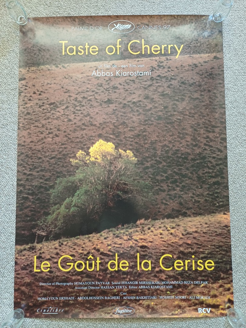 De film waarvan de Engelse titel Taste of Cherry luidt, behelst de minutieus vertelde zoektocht van een man naar hulp bij zijn zelfmoord. Iemand moet het graf dichtgooien dat hij zelf al heeft gegraven. Maar iedereen weigert assistentie. Dan ontmoet hij een man die hem naar de wijsheid van het plan vraagt: 'Zul je de smaak van kersen dan niet missen?' Kiarostami, regisseur van zulk gelauwerd werk als Through the Olive Trees en Waar staat het huis van mijn vriend? werd in Cannes onderscheiden met de (gedeelde) Gouden Palm, nadat tot op het laatste moment onzeker was geweest of hij voor het festival zijn vaderland mocht verlaten.