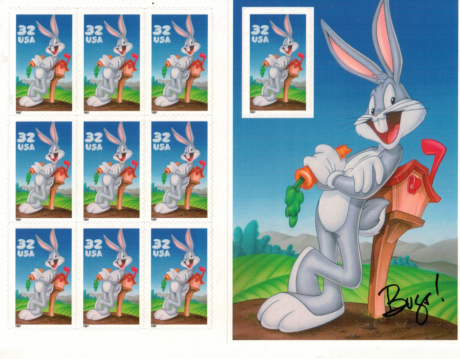 AMERIKAANSE POSTZEGELS BUGS BUNNY 1997 BUGS BUNNY LOONEY TUNES PANE VAN 10 POSTFRISSEN.