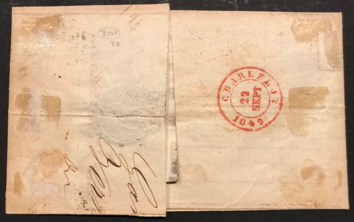 België 1849 - Epaulet 2 in paar op briefomslag MET INHOUD 21 SEPT 1849 - Perceptiestempel 45 GAND naar CHARLEROI - OBP 2 + Curiositeit "kwartslag in datumstempel"