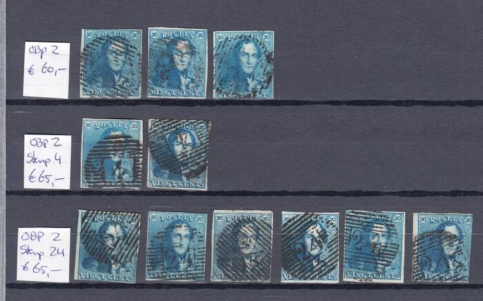 België 1849 - Koning Leopold I "Epauletten" OBP 2 o.a. met stempels - OBP 2