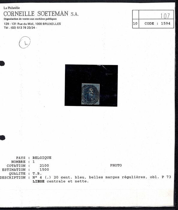 Schitterend exemplaar zeer fris exemplaar met mooie marges en stempel P73 Liège ideaal aangebracht.