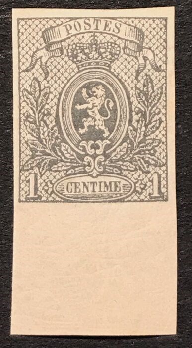 België 1866/1867 - Kleine Leeuw- 1c Grijs ONGETAND - GROTE LUXE met VELRAND - OBP 22