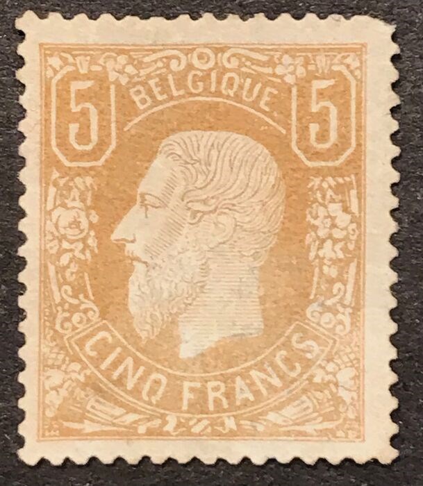 België 1869 - Leopold II 5 frank OBP 37A Lichtbruin - Gesigneerd Stolow - OBP 37A