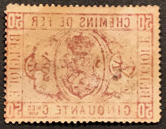 België 1879/1882 - Spoorwegzegel Rijkswapen - 1e emissie - 50 centimes Roze - OBP TR4