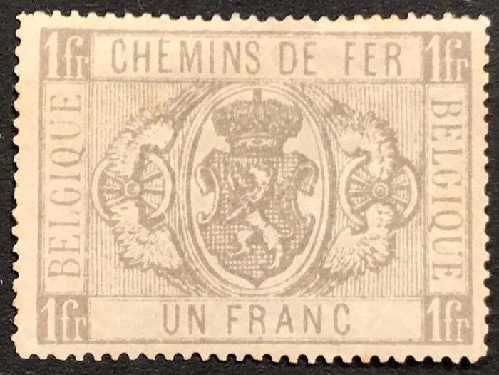 België 1879/1882 - Spoorwegzegel Rijkswapen - 1e emissie - 1 franc Grijs - Mooie Centrage - OBP TR6