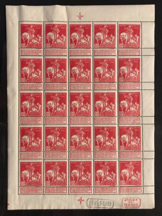 België 1910/1910 - Caritas - 10c Type Lemaire (effen achtergrond) in VOLLEDIG VEL - POSTFRIS - OBP F91